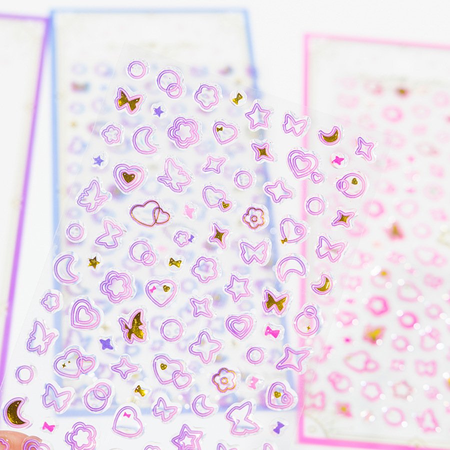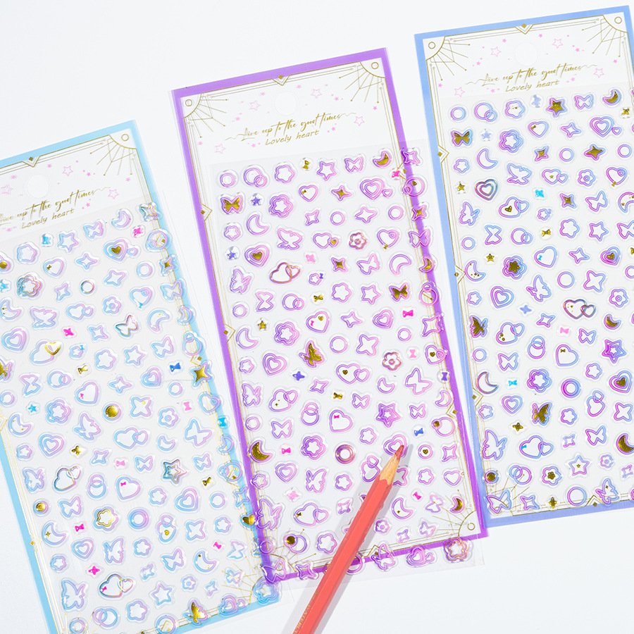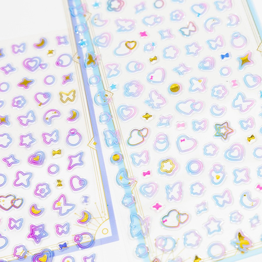 Romantic Celestial Crystal Stickers: Hearts, Stars & Moons