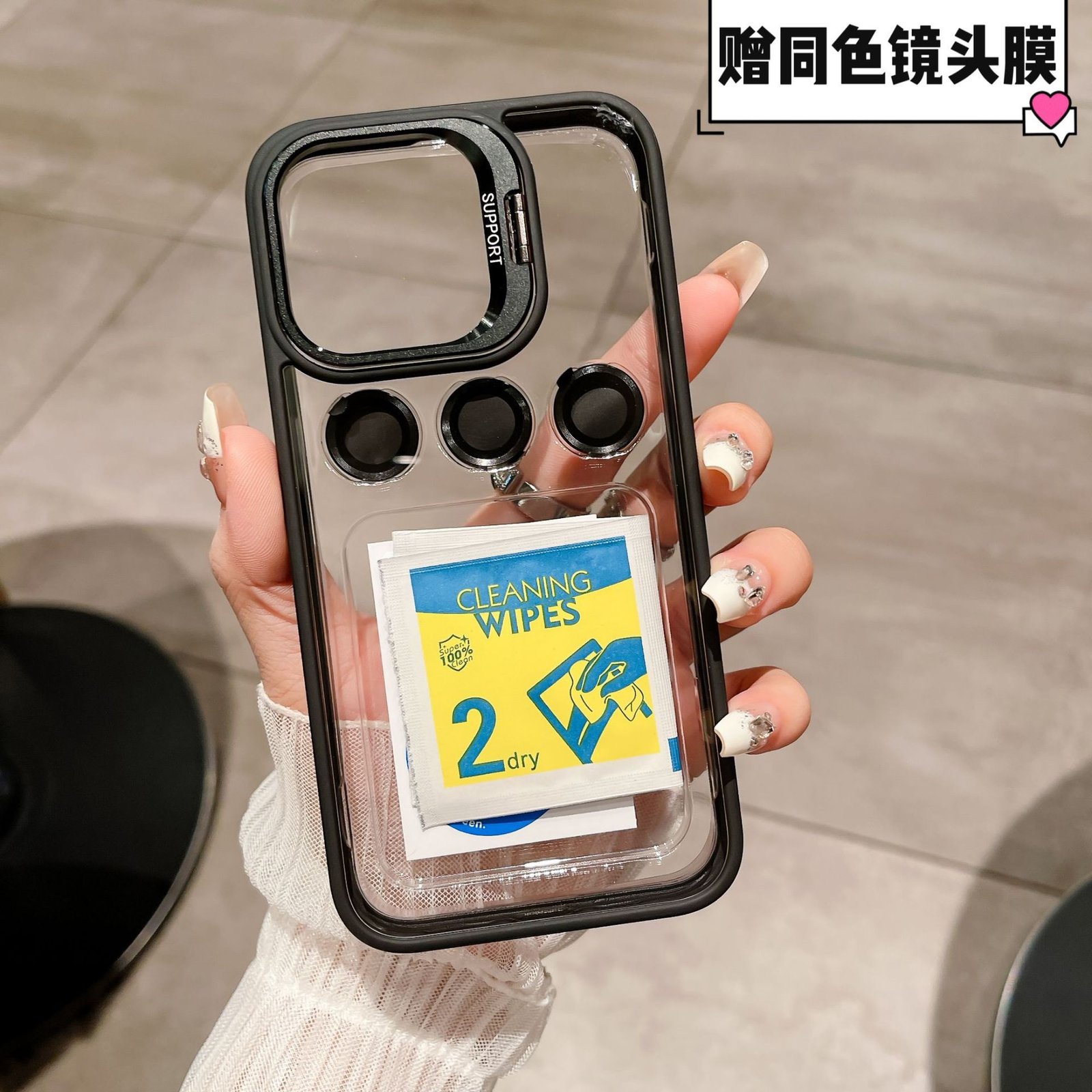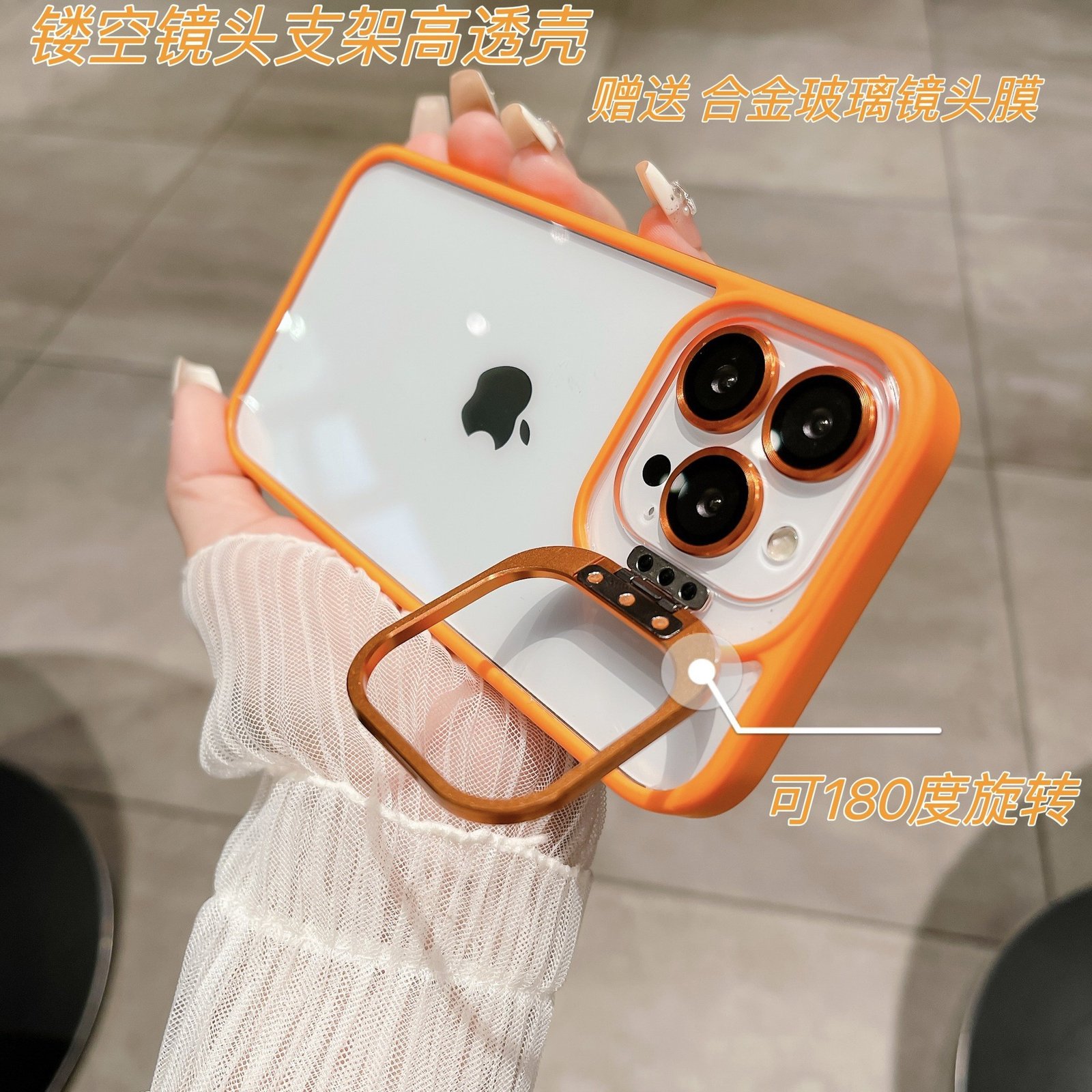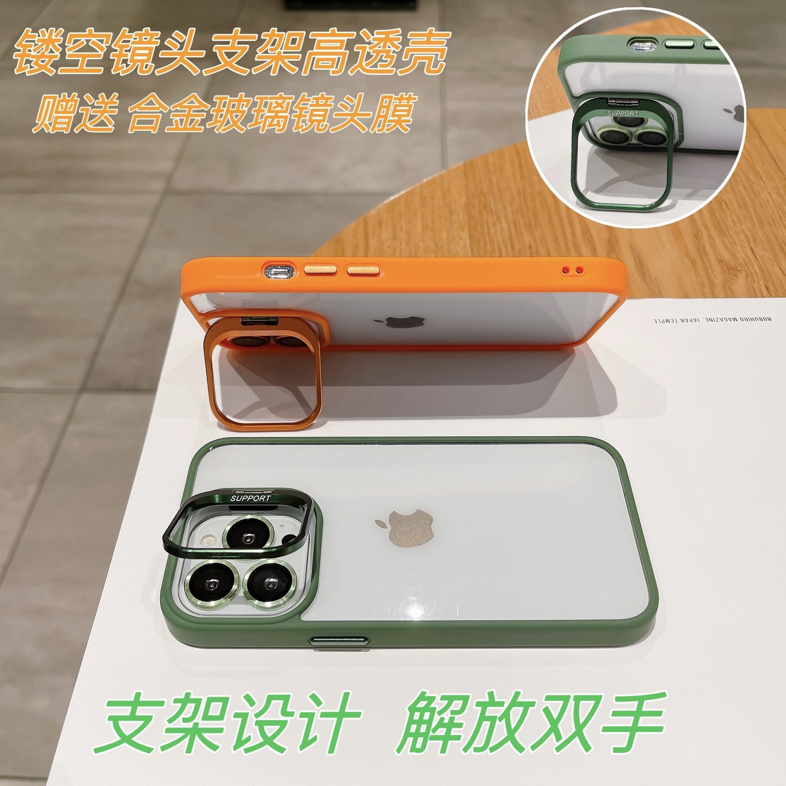 Transparent Mobile Phone Case with Holder Stand Give Lens Film Shock Proof Protective Cover for Iphone 13-16